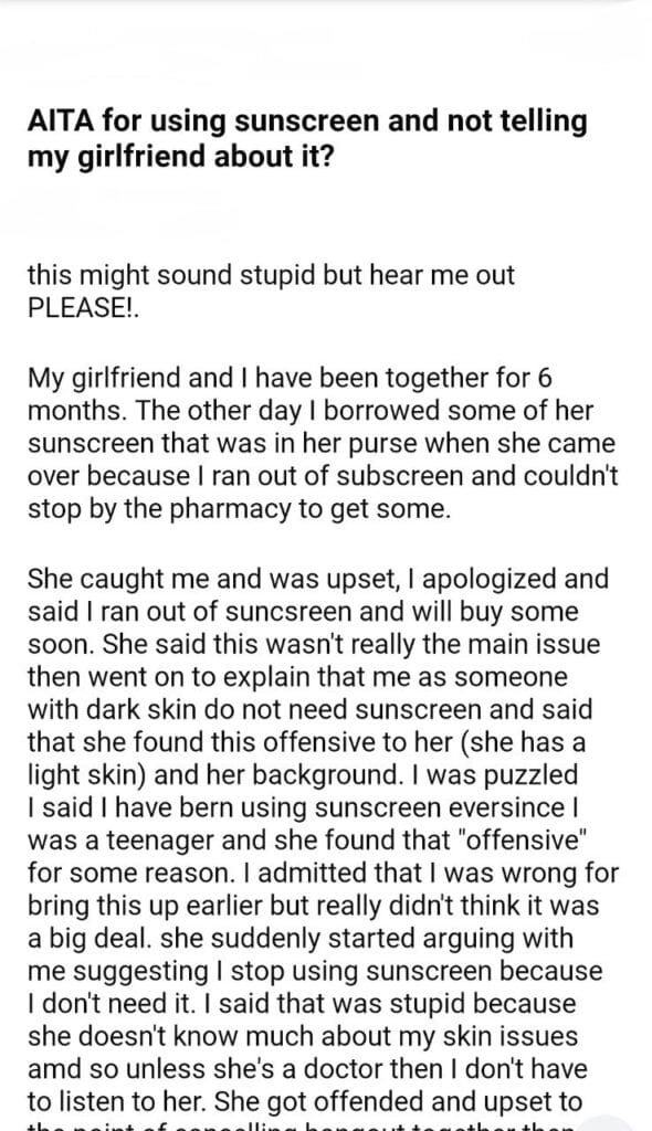 AITA for using sunscreen