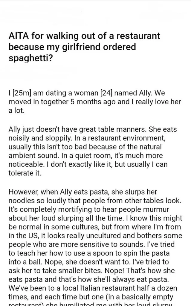 AITA for walking out of a restaurant