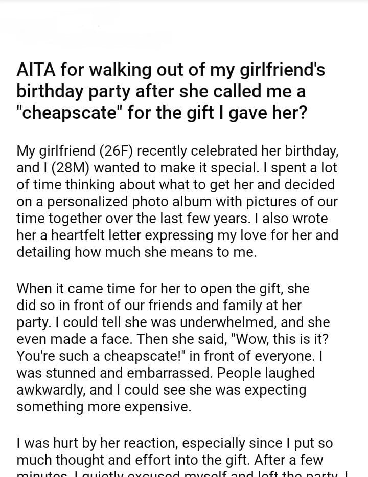 AITA for walking out of my girlfriend’s birthday party