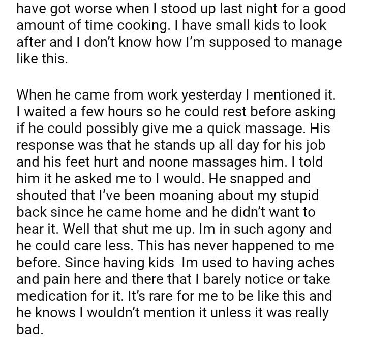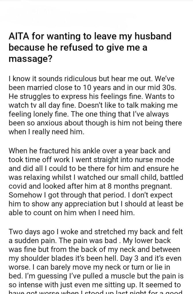 AITA for wanting to leave my husband because he refused to give me a massage?
