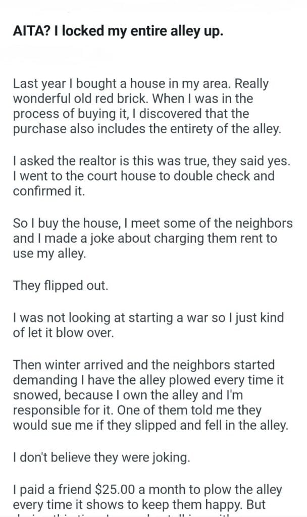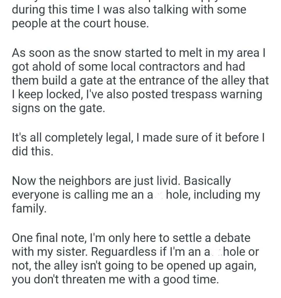 AITA my entire alley