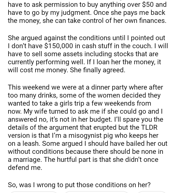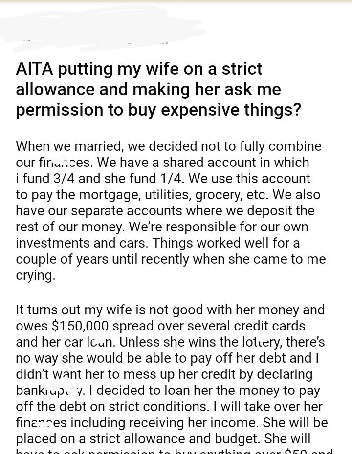 AITA putting my wife on a strict allowance