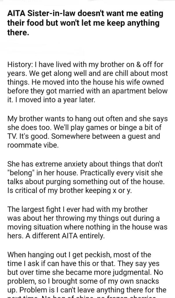 AITA Sister-in-law food