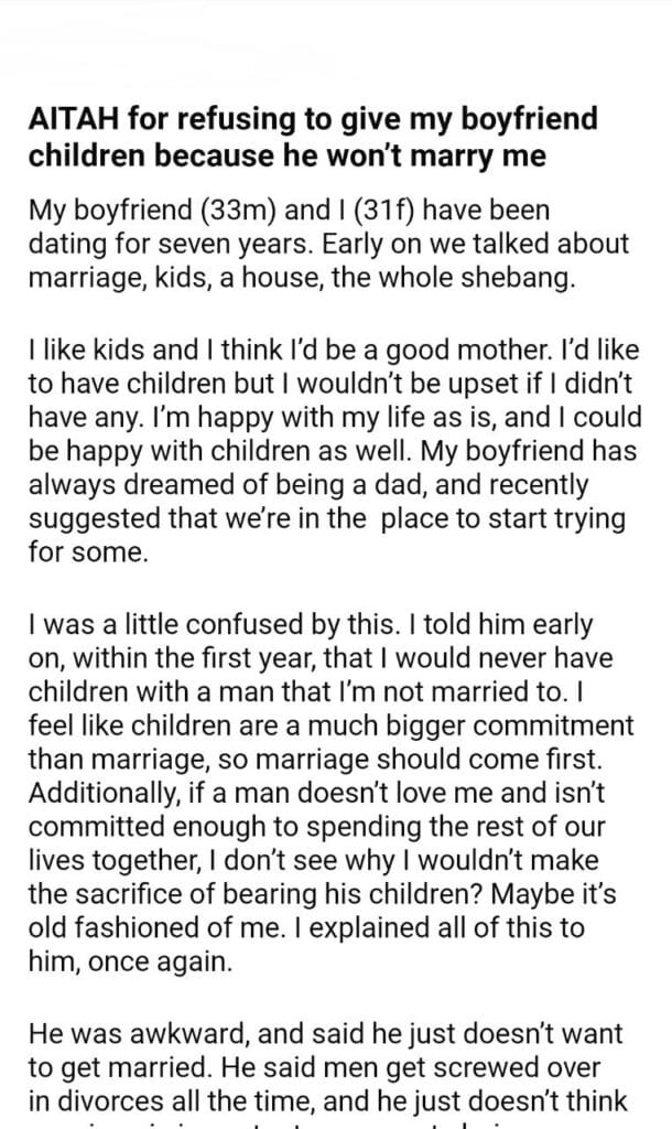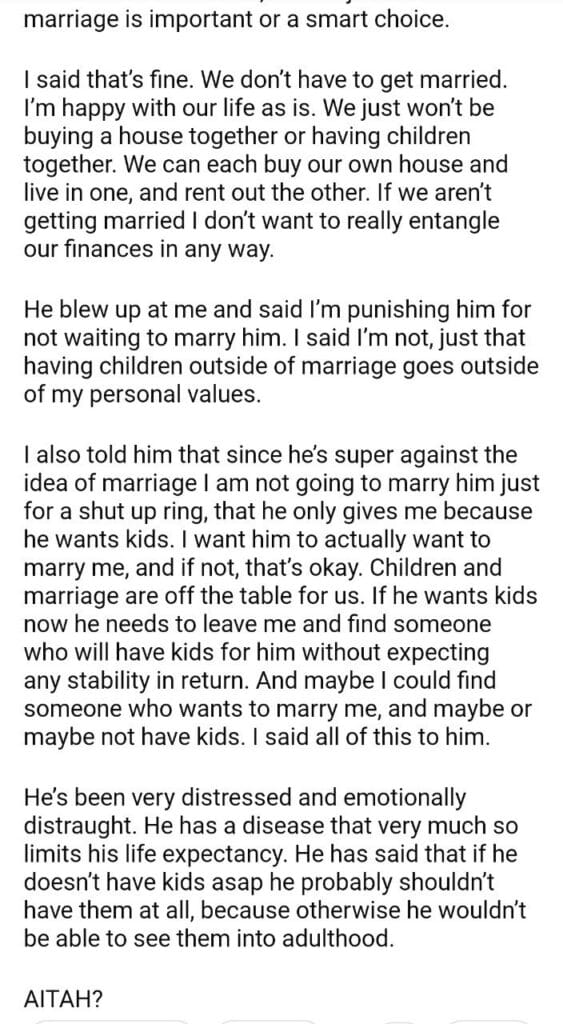 AITAH because he won’t marry me