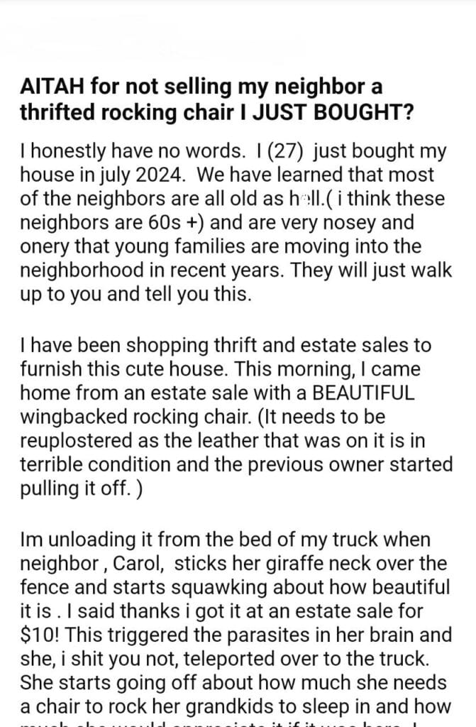 AITAH for a thrifted rocking chair