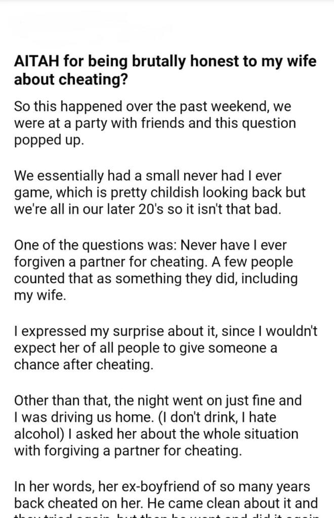 AITAH for being honest to my wife
