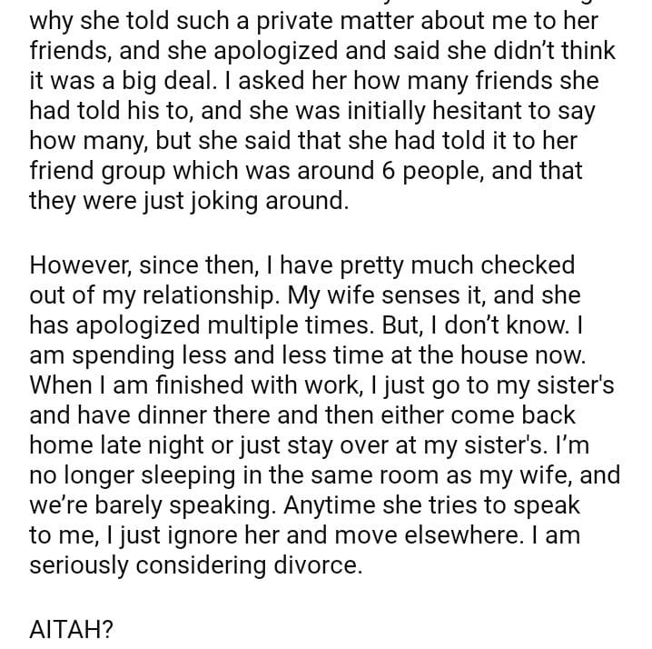 AITAH for checking out of my relationship