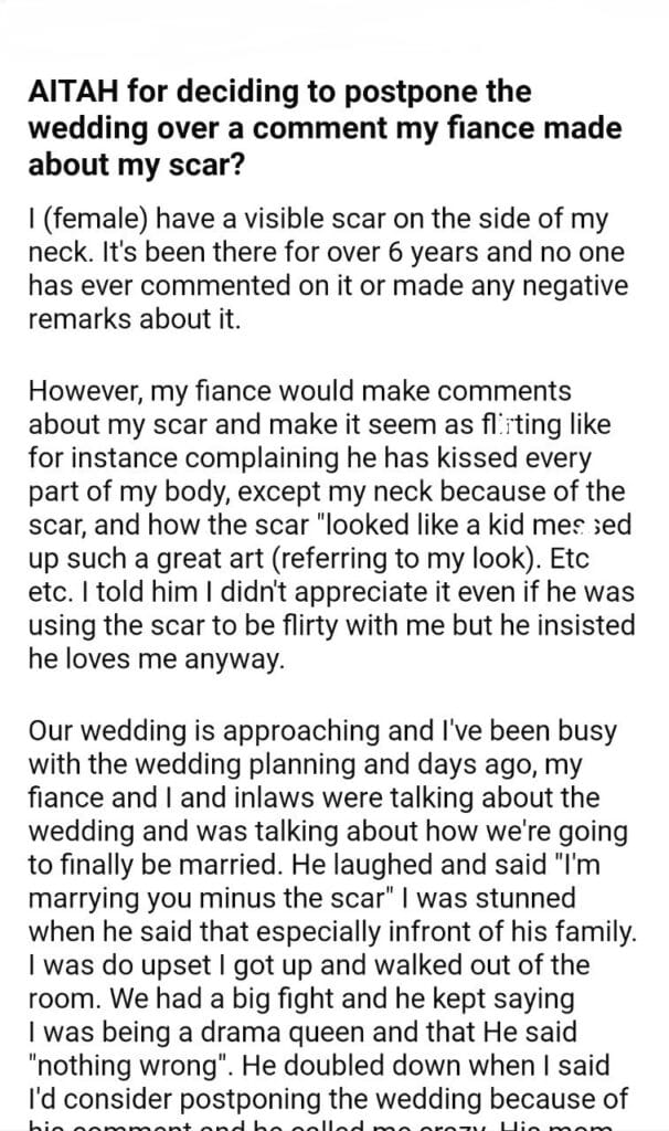 AITAH for deciding to postpone the wedding