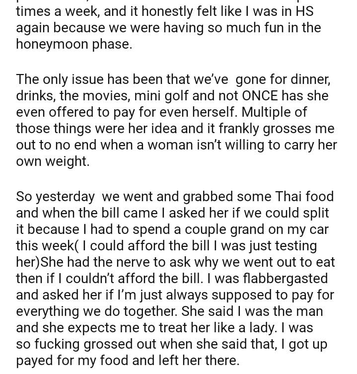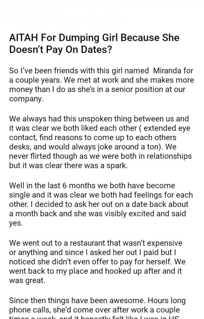 AITAH For Dumping Girl Because She Doesn’t Pay On Dates?