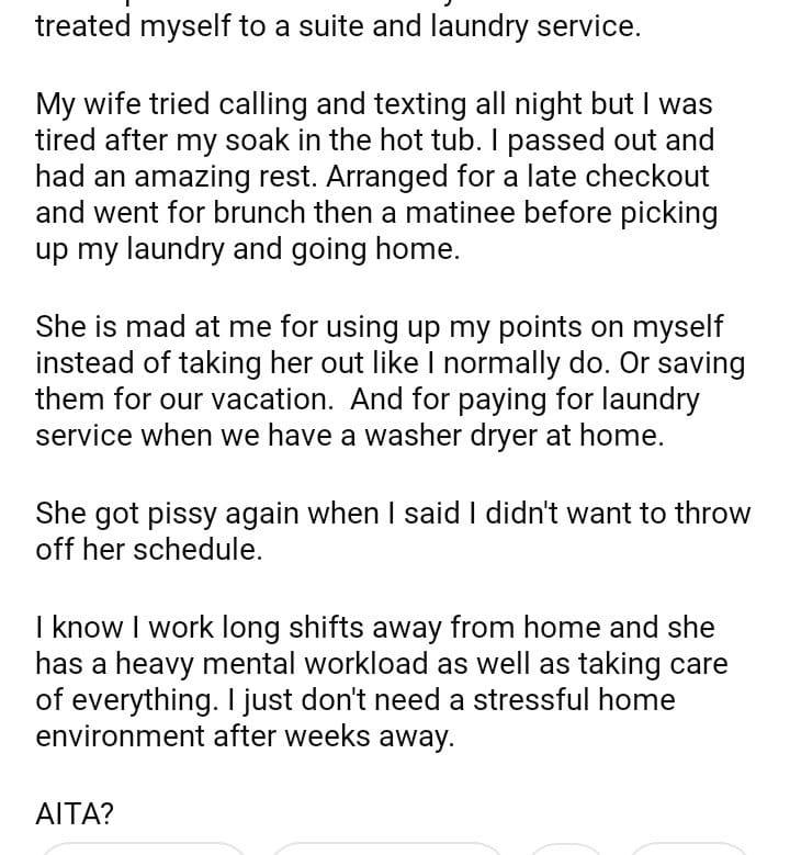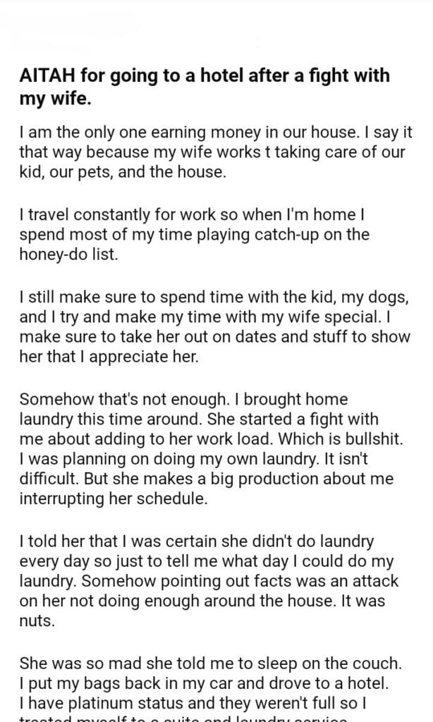 AITAH for going to a hotel after my wife.