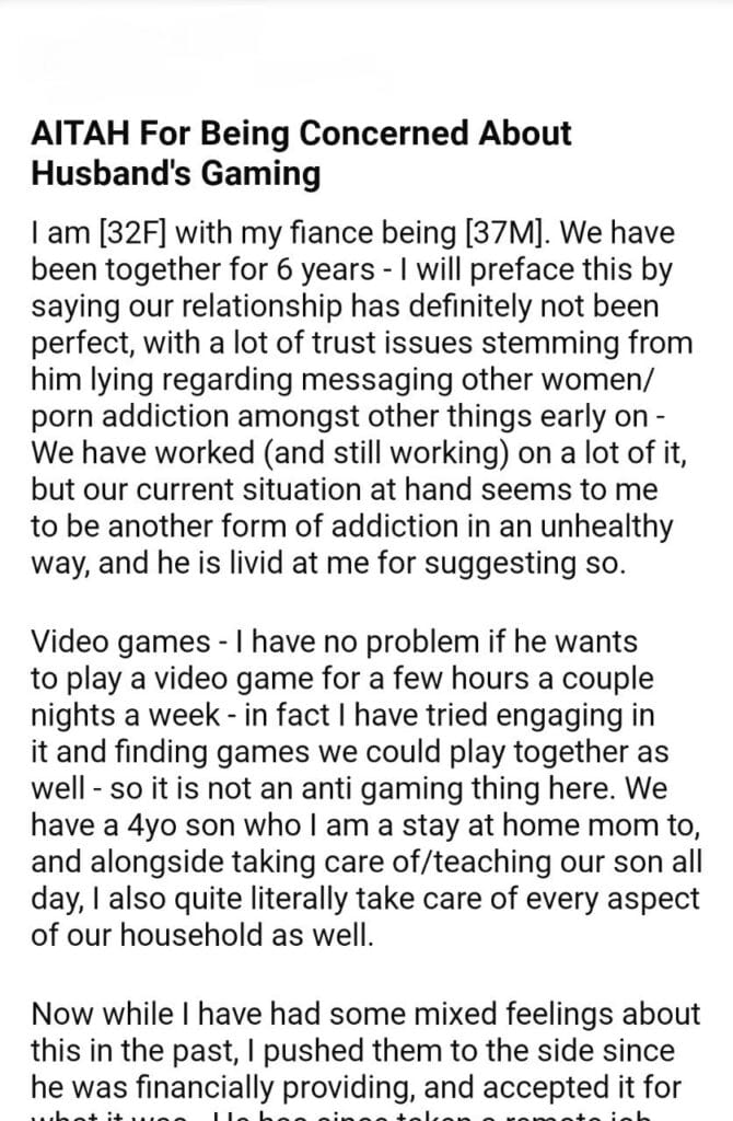 AITAH For Husband’s Gaming