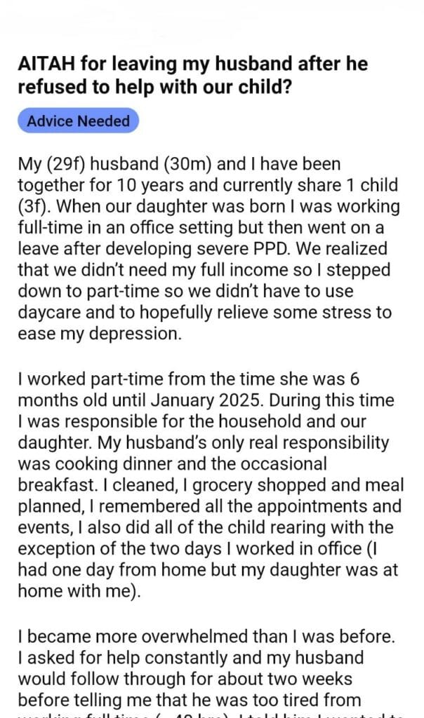 AITAH for leaving my husband after what he did