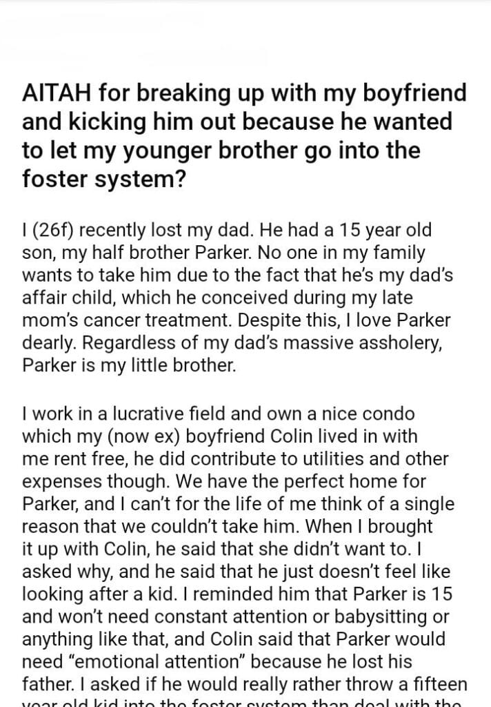 AITAH for my boyfriend because he wanted to let my younger brother go into the foster system?