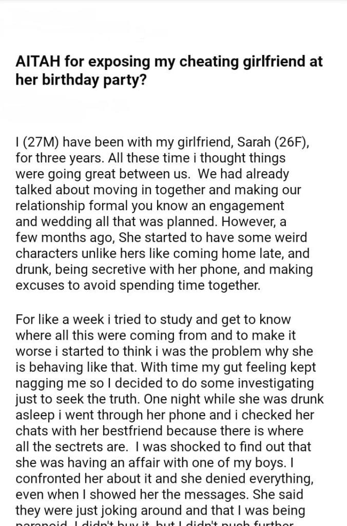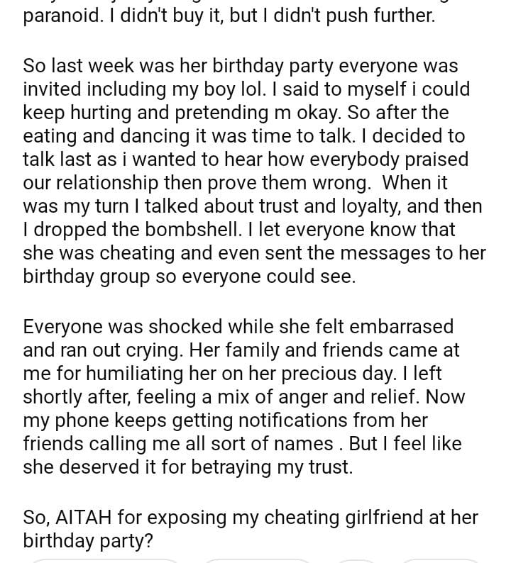 AITAH for my girlfriend at her birthday party?
