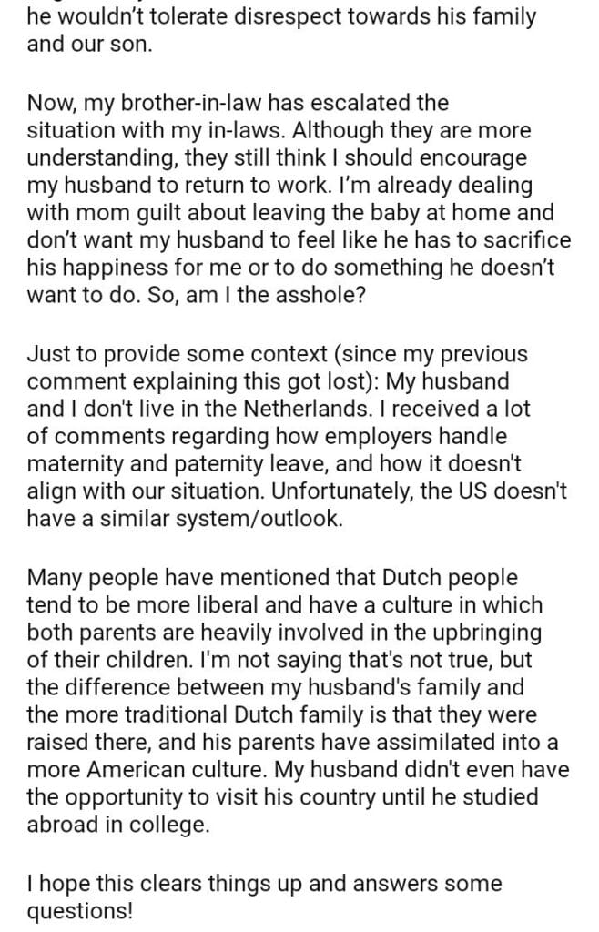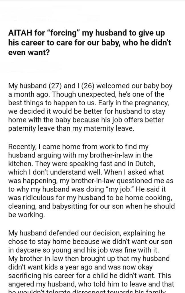 AITAH For My Husband To Give Up His Career To Care For Our Baby