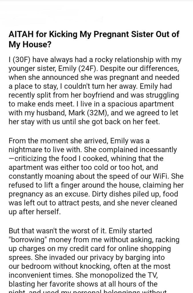 AITAH for My Pregnant Sister Out of My House?