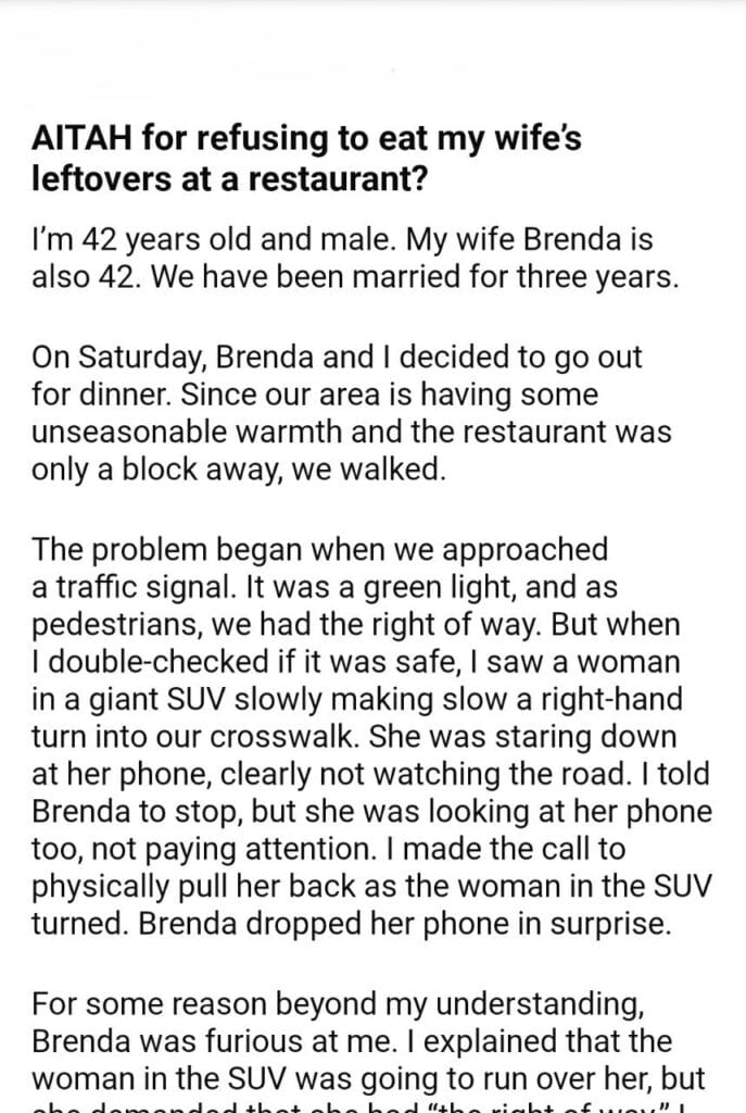 AITAH for my wife’s leftovers at a restaurant?