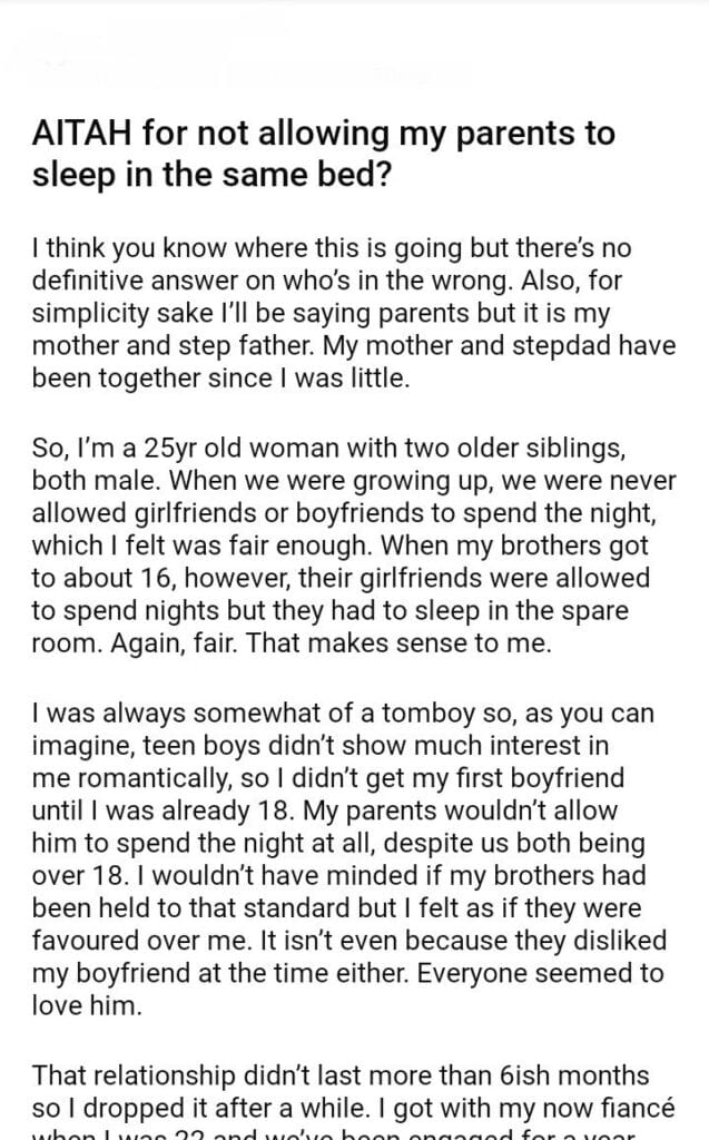 AITAH for not allowing my parents to sleep in the same bed?