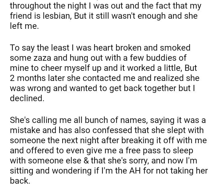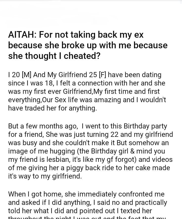 AITAH: For not taking back my ex