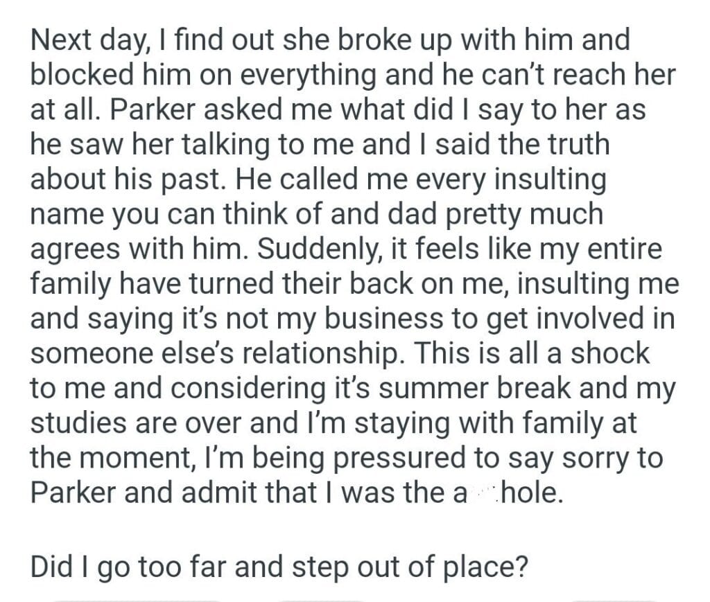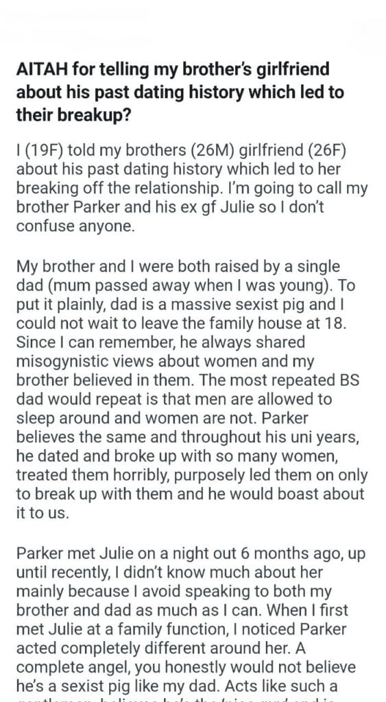 AITAH for telling my brother’s girlfriend