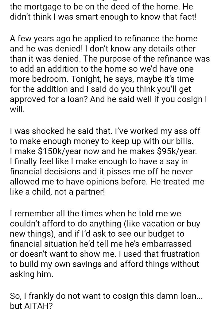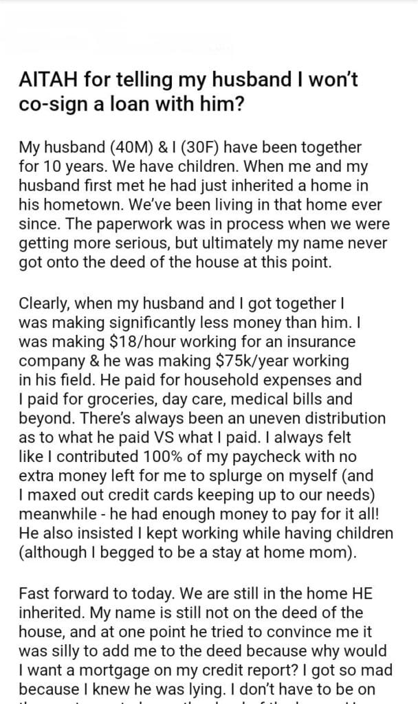 AITAH for telling my husband I won’t co-sign