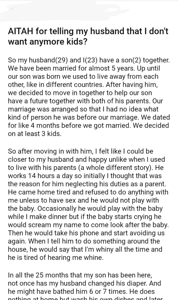 AITAH for telling my husband that I don’t want anymore kids?