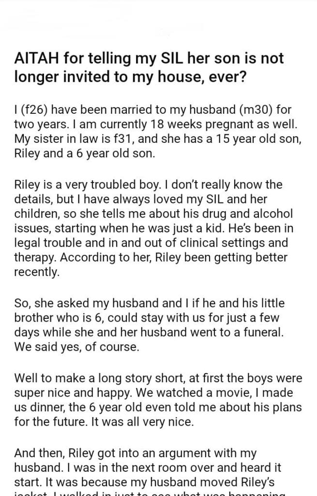 AITAH for telling my SIL her son is not longer invited to my house