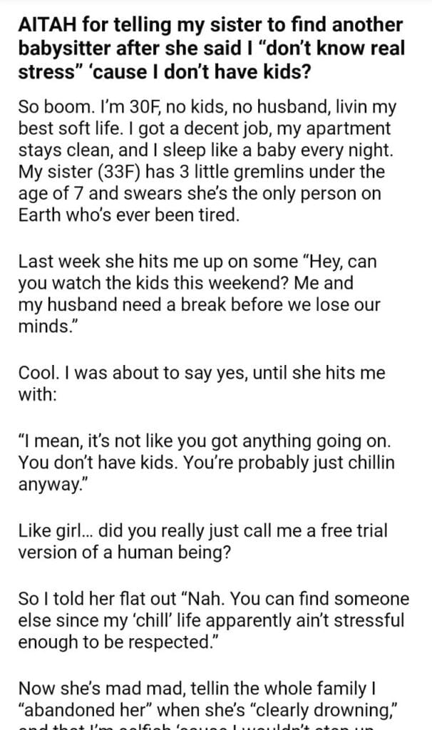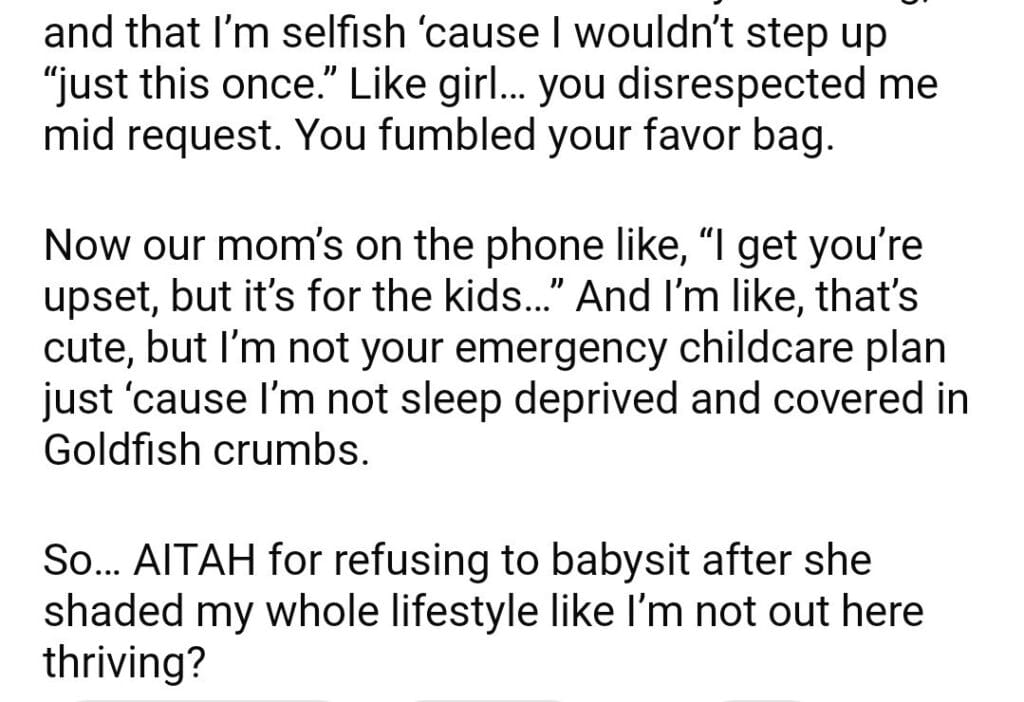 AITAH for telling my sister to find another babysitter