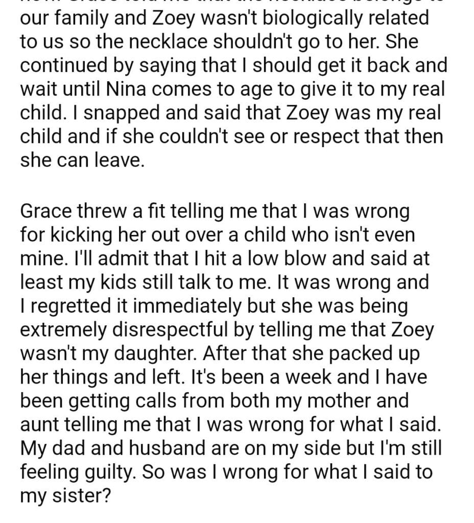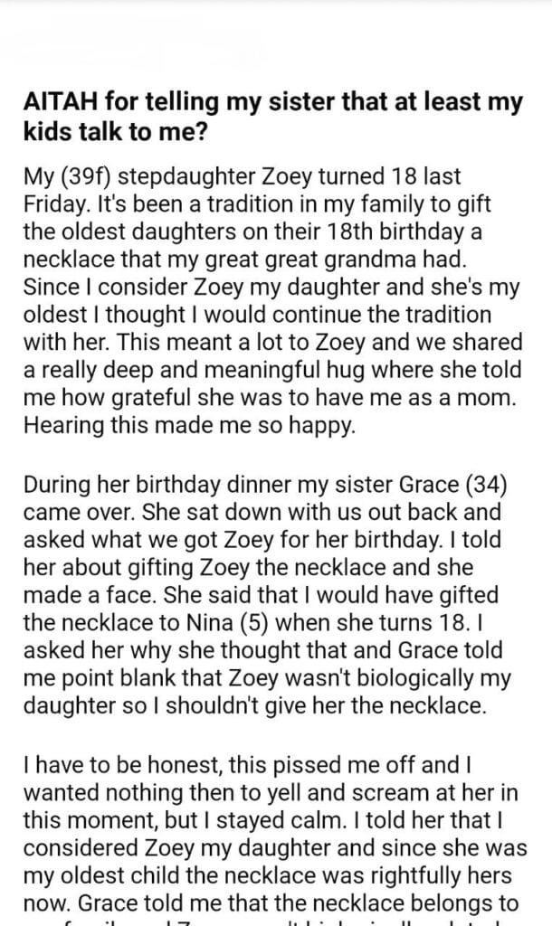 AITAH for telling my sister
