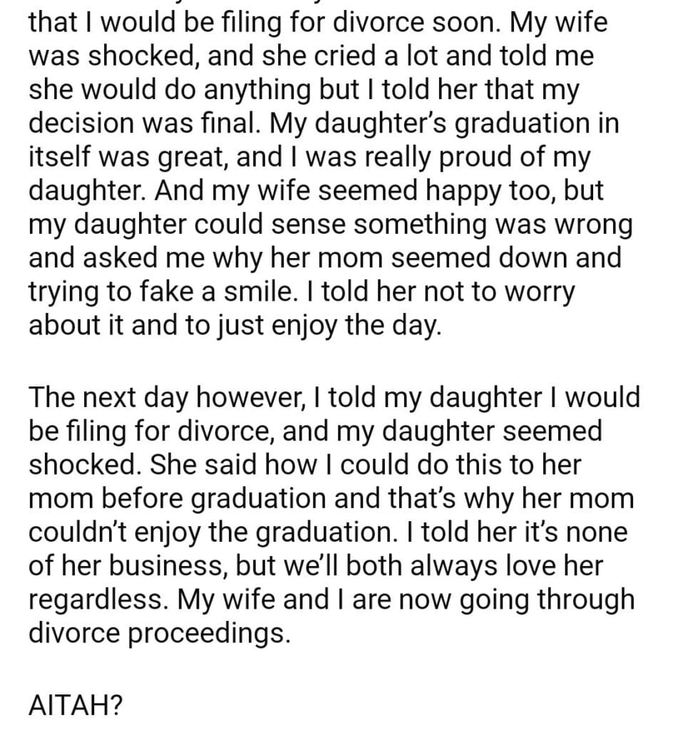AITAH for telling my wife I would be divorcing her?