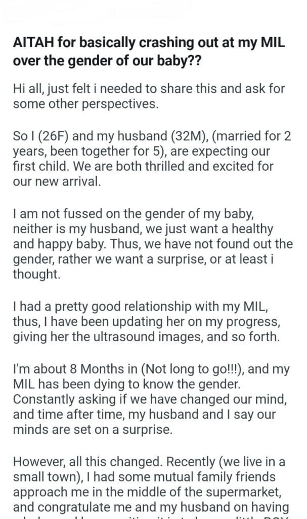 AITAH for the gender of our baby??