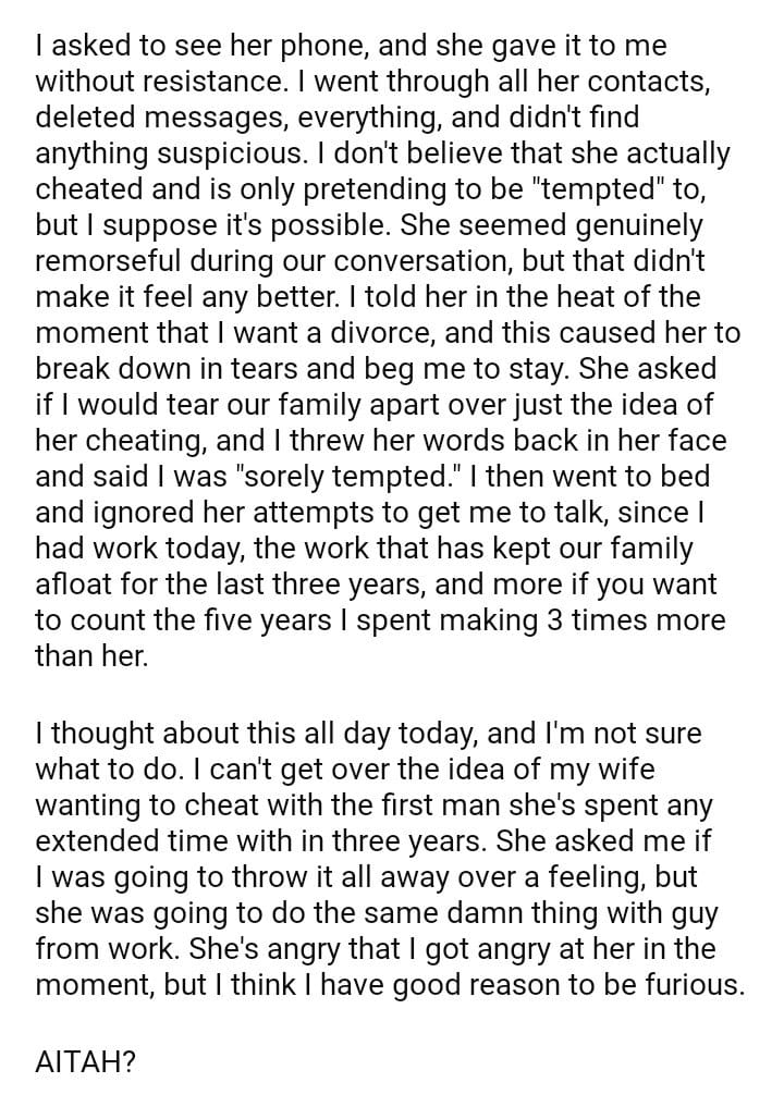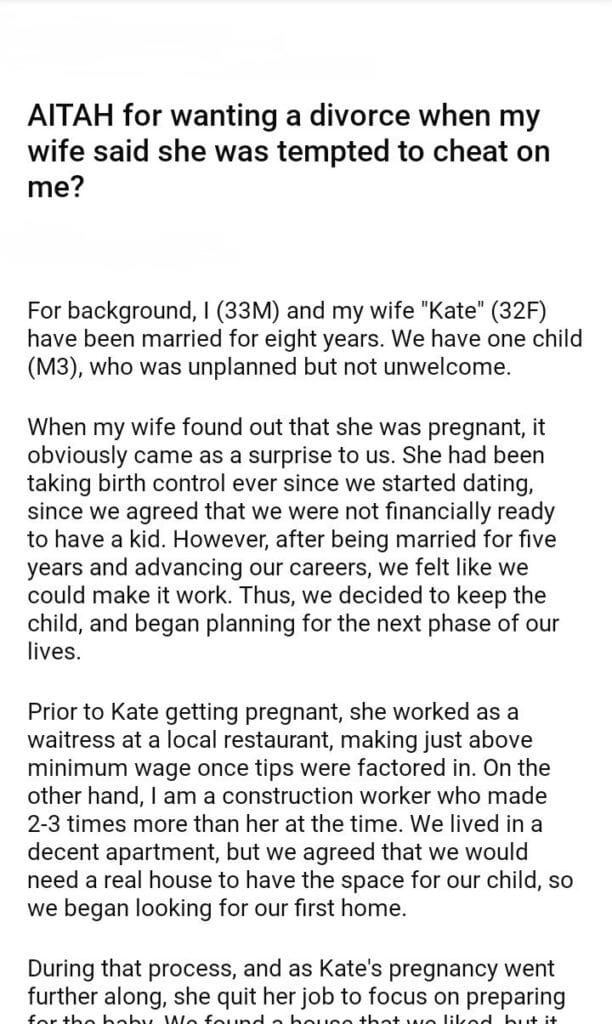 AITAH for wanting a divorce when my wife said