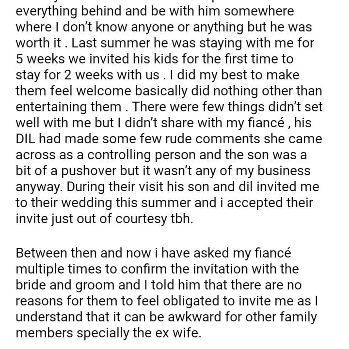 AITH for my fiancé because I was asked to leave his son’s wedding