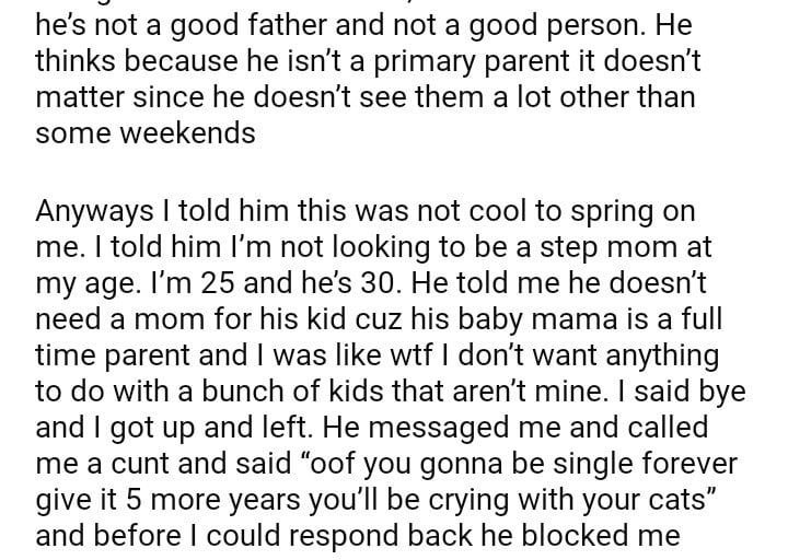 am I wrong for leaving in the middle of the date after he told me he had kids?