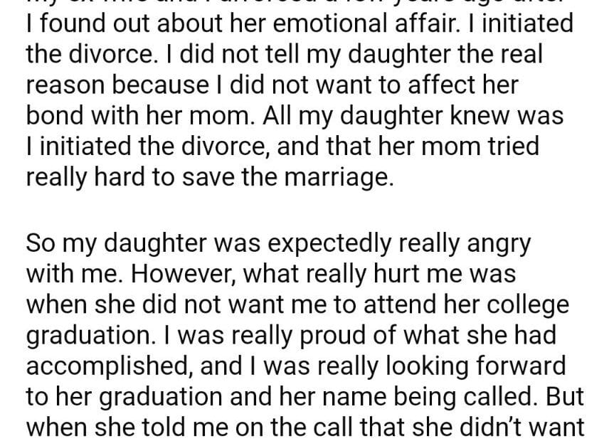 AITA for my daughter college graduation