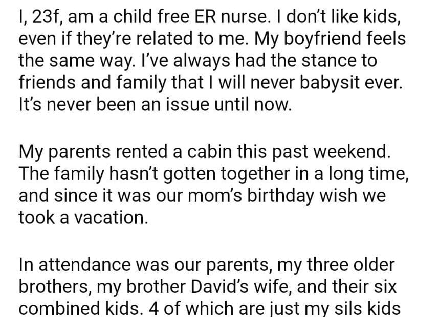 AITAH for my SIL her kids while on vacation