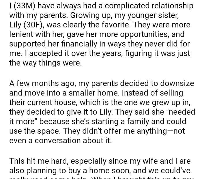 AITA for refusing to help my parents after they gave my sister their house?September 2, 2024September 2, 2024AITA