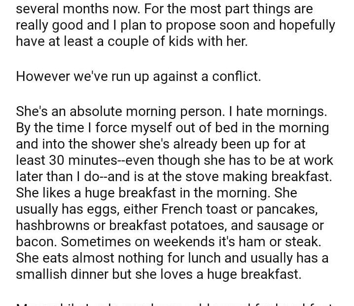 AITA for asking my girlfriend to start making me breakfast every morning?September 3, 2024September 3, 2024AITA