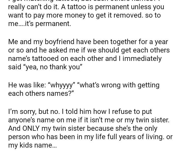 AITAH For Telling My Boyfriend I’m Not Getting His Name Tattooed On MeAugust 2, 2024August 2, 2024AITA