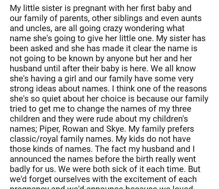 AITA for defending my sister’s right to keep her baby’s name secret until after the birth?July 26, 2024July 26, 2024AITA