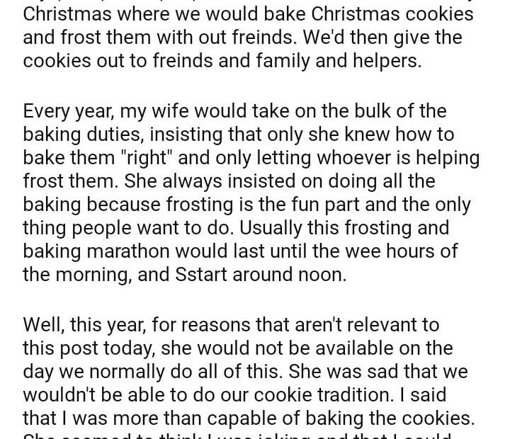 AITA: For “upstaging” my wife in our Christmas cookie baking tradition?July 24, 2024July 24, 2024AITA