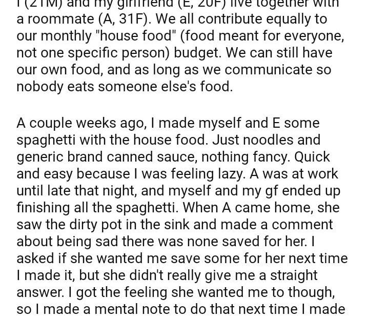 AITA for telling my roommate I don’t cook food she likes because I don’t cook for her?July 23, 2024July 23, 2024AITA