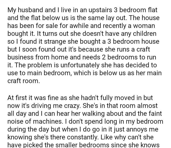 AITA for asking my neighbour to move her craft room to a different bedroomJuly 8, 2024July 8, 2024AITA