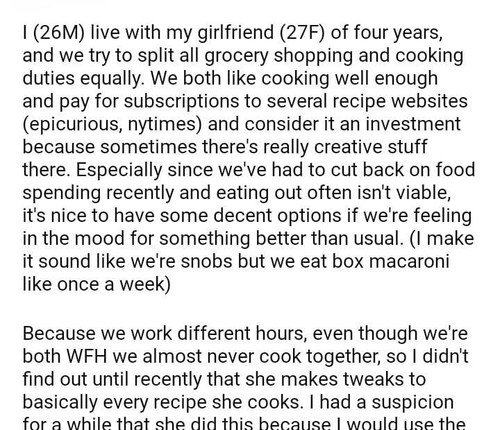 AITA for saying my girlfriend thinks she knows better than culinary professionalsJuly 9, 2024July 9, 2024AITA
