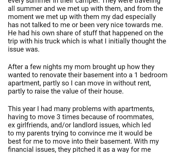 AITA for a family vacation because I don’t want to move into my parents basementJuly 7, 2024July 7, 2024AITA