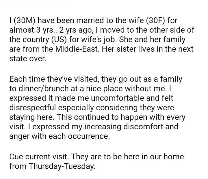 AITA for doing the same? In-Law Visits exclude me from their Brunch/Dinners “As a Family”June 30, 2024June 30, 2024AITA