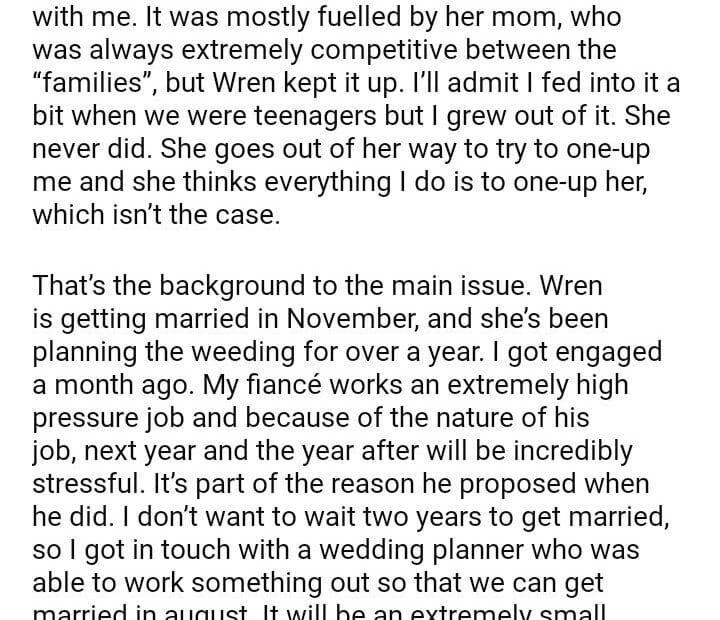 AITA for refusing to move my wedding date because of my competitive stepsister?June 28, 2024June 28, 2024AITA