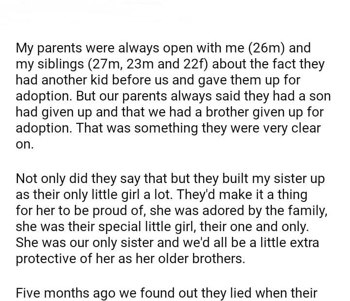 AITA for blaming my parents for the way my sister reacted to their other daughter finding us?June 22, 2024June 22, 2024AITA