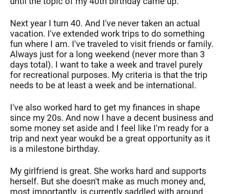 AITA for going on vacation without my girlfriend if she can’t pay her way?June 15, 2024June 15, 2024AITA