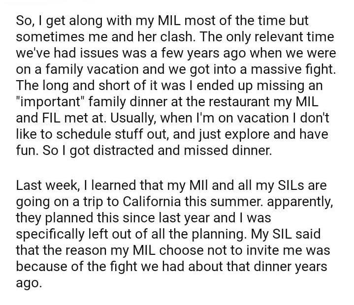 AITA for calling my MIL out for excluding only me on the family girls’ trip?June 12, 2024June 12, 2024AITA
